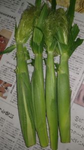 1番外の硬くて青い皮をとり(内側の、柔らかい皮は残っていても
